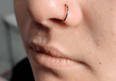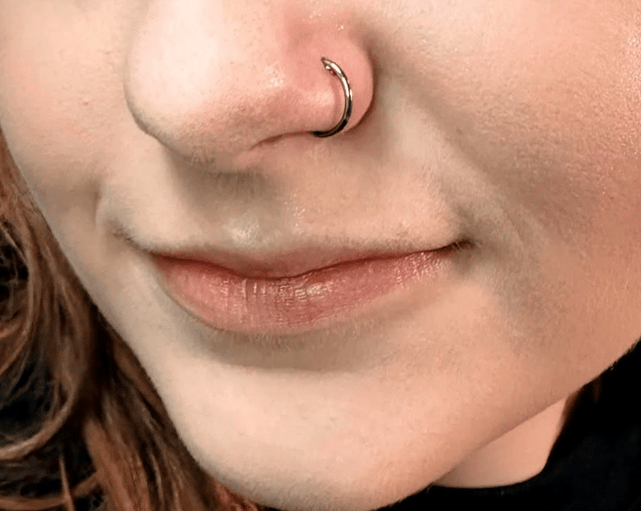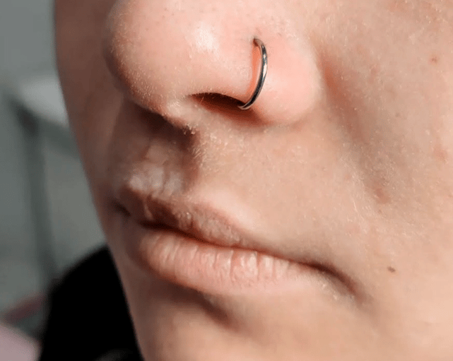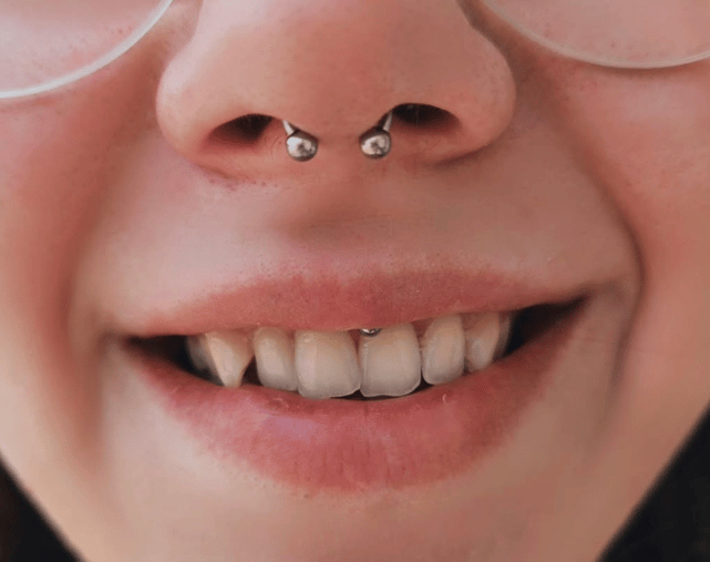 Opis: Przekłucie przegrody nosowej, modne i wyraziste.