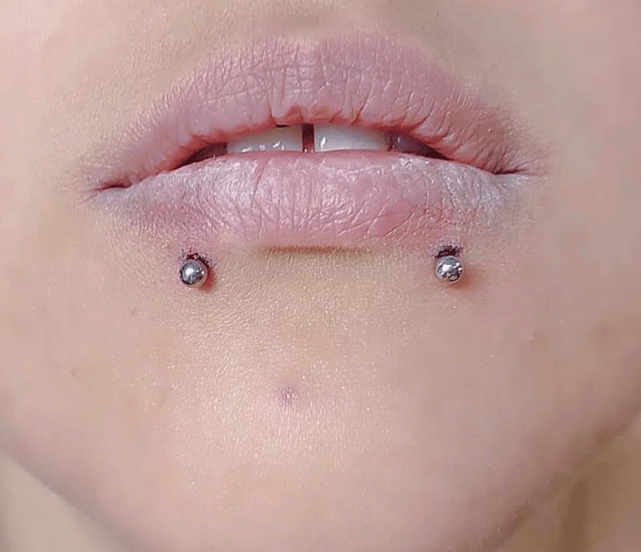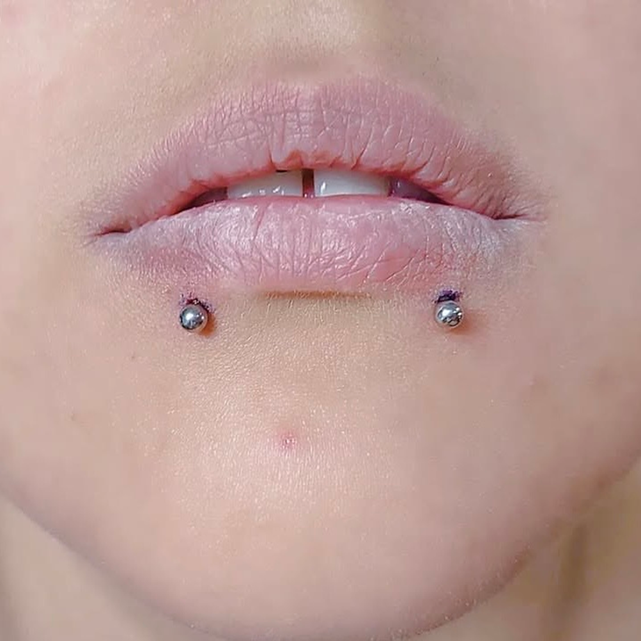 • Vertical labret – przebija wargę pionowo bez kontaktu z jamą ustną