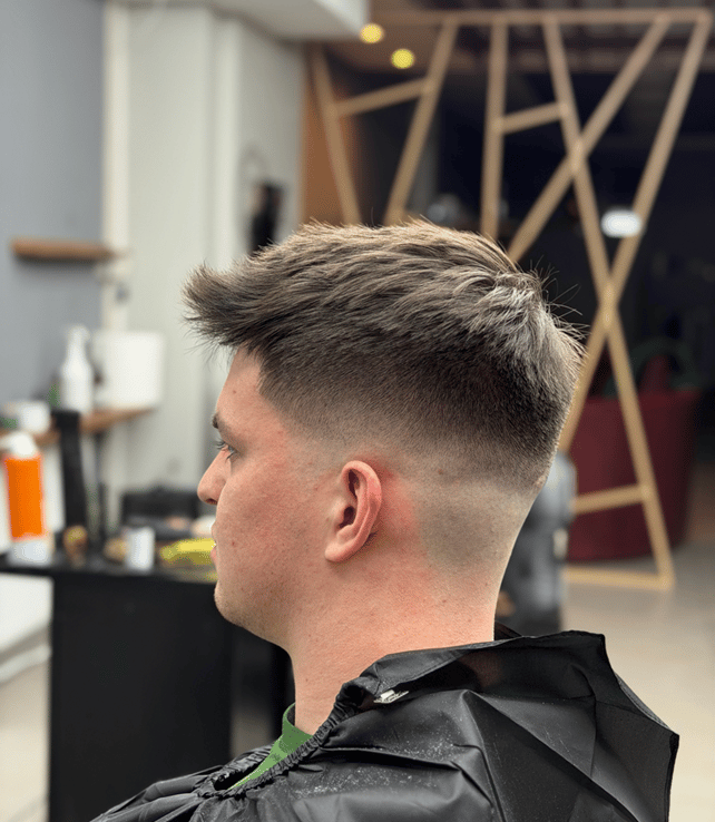Precyzyjne strzyżenie krótkich włosów z dopasowaniem do kształtu twarzy i stylu klienta. Mycie oraz końcowa stylizacja w cenie.